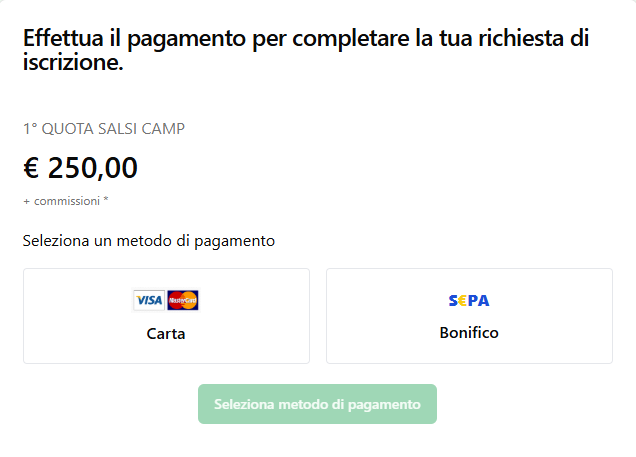 Al termine del modulo ti verrà richiesto di effettuare il pagamento della prima rata confirmatoria.